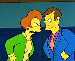 Мисс Крабаппл объявляет забастовку директору Скиннеру | |