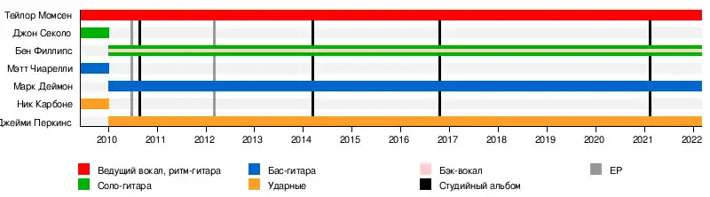 - Тейлор Момсен — ведущий вокал, ритм-гитара (2009-настоящее)