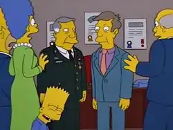 Симпсоны и Чалмерс видят Скиннера(налево) и лже-Скиннера(направо) | |
