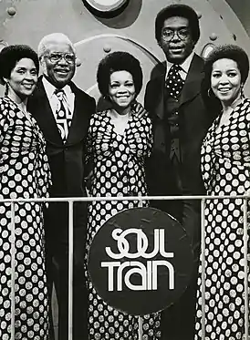 ![]() The Staple Singers с ведущим Soul Train Дон Корнелиус в 1974 году. | |