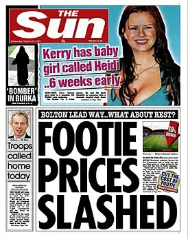 «Сан»[3] (англ. The Sun «Солнце») — британский таблоид, основанный в 1964 году. Тираж газеты по состоянию на июнь 2011 года составляет 2 806 746 экземпляров. Издаётся в Великобритании и Ирландии. В среднем в день газету читает около 7,7 млн человек, из них 56 % составляют мужчины и 44 % — женщины.[4] Принадлежит медиахолдингу News Corporation.
