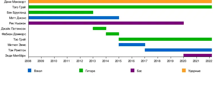 - Бен Бруклэнд — гитара (2008 — 2013)