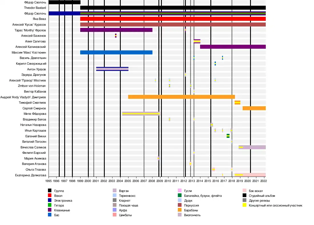 | Состав | Фёдор Сволочь, Яна Вева, Кусас, Алексей Калиновский, Сергей Смирнов, Вячеслав Саликов, Екатерина Долматова |