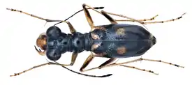 Жуки-скакуны мелкого и среднего размера с крупными глазами, стройным телом и длинными ногами. Длина тела от 5 до 23 мм. Основная окраска варьирует у разных видов от полностью чёрной до различных оттенков синего или чёрного с оранжевыми или жёлтыми отметинами на надкрыльях. Имеют редуцированные ротовые органы, кроме увеличенной верхней губы, покрывающей сверху жвалы. Встречаются во влажных тропических лесах. Личинки одного из видов обнаружена в гнилой древесине[1][2].