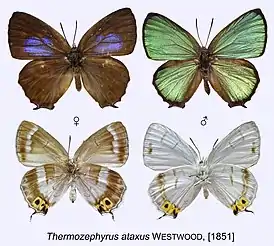Thermozephyrus ataxus — вид дневных бабочек из семейства голубянок (Lycaenidae).