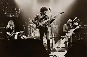 ![]() Thin Lizzy в Manchester Apollo, 1983 год. Слева направо: Джон Сайкс, Фил Лайнотт, Скотт Горэм, Даррен Уортон | |