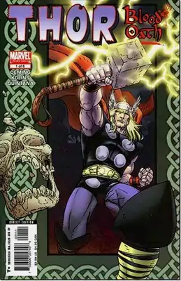![]() Обложка выпуска Thor: Blood Oath #1 (ноябрь, 2005). Художник Скотт Коллинс. | |