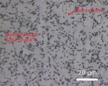 Титановый сплав Ti-6Al-4V обычно существует в виде альфа-фазы с кристаллической структурой плотно упакованных равных сфер (SG : P63 / mmc) и бета-фазы с кубической кристаллической структурой (SG : Im-3m). Хотя механические свойства зависят от условий термообработки сплава и могут изменяться в широких интервалах, типичные диапазоны свойств для хорошо обработанного Ti-6Al-4V показаны ниже[6][7][8]. Алюминий стабилизирует альфа-фазу, а ванадий — бета-фазу[9].