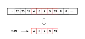 - run — упорядоченный подмассив во входном массиве. Причём упорядоченный либо нестрого по возрастанию, либо строго по убыванию. Т.е: