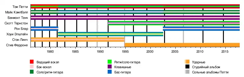 - Том Петти — вокал, ритм и соло-гитара, бас-гитара, губная гармоника, клавишные, укулеле (1976—2017; умер в 2017)