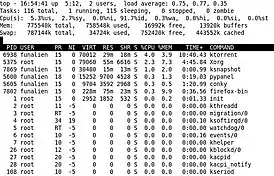 top (table of processes) — консольная команда, которая выводит список работающих в системе процессов и информацию о них. По умолчанию она в реальном времени сортирует их по нагрузке на процессор. Программа написана для UNIX-совместимых операционных систем и опубликована под свободной лицензией GNU FDL.