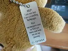 ToyVoyagers — игрушки, путешествующие по миру с помощью людей, которые передают их друг другу. Путешествия и приключения этих игрушек отслеживаются на сайте ToyVoyagers.com.