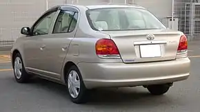 Седан Platz (яп. プラッツ) имел такую же колёсную базу и колею, как хэтчбек, но был на полметра длиннее за счёт отдельного багажника объёмом 385 литров[31]. Несмотря на общую внешнюю схожесть с Vitz, большая часть панелей кузова седана была новой[49], одинаковыми у обеих моделей были только передние двери[38]. Помимо литрового, Platz оснащался двигателем рабочим объёмом 1,5 литра мощностью 109 л.с., полноприводная версия имела 1,3-литровый мотор[50].