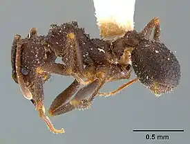 Мелкие муравьи буроватого цвета. Длина головы рабочих (HL) в пределах 0,94—1,25 мм (у маток — 1,2 мм), ширина головы рабочих (HW) — 1,0—1,4 мм (у маток — 1,35—1,4 мм). Усики состоят из 11 члеников, без явной булавы. Тело покрыто многочисленными бугорками (каждый с волоском) и шипиками. Живут в земляных гнёздах, под камнями и корнями растений. Характерны своим тесным симбиозом с грибами, выращиваемыми в муравейниках[2]. Семьи небольшие, насчитывают около 1000 муравьёв[3]. Активность колонии и численность грибных камер сокращается с ноября по май[4]. Фуражировка происходит, главным образом, в ночное время, так как температура почвы днём достигает +50 °C[5].