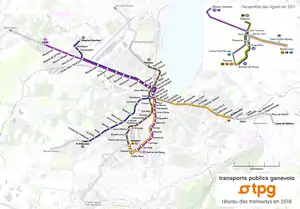 TPG является преемником фирмы Compagnie Genevoise des Tramways Électriques (компания электрических женевских трамваев), которая эксплуатировала трамвайную сеть Женевы с 1900 года по 1 января 1977 года[1].