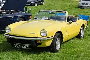 Triumph Spitfire — компактный британский двухместный спортивный автомобиль, впервые представленный на Лондонском автосалоне в 1962 году[3]. Автомобиль был создан по проекту, разработанному для Standard-Triumph в 1957 году итальянским дизайнером Джованни Микелотти. В основу нового автомобиля, в значительной степени, легло шасси седана Triumph Herald, но кузов Spitfire получился короче. Spitfire также получил ходовую часть от Herald и двигатель Standard SC. Spitfire выпускался на заводе Standard-Triumph в Канли, Ковентри.