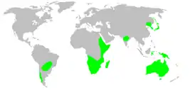 Австралия, Южная Америка, Ориентальная область, Мадагаскар и Африка[3].