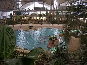 - Южное море — Бассейн 140 метров длиной, площадью 4 400 квадратных метров и 1,35 метров в глубину, как копия залива атолла с песчаным пляжем, шириной 200 м , 850 деревянных раскладывающихся стульев-лежанок. Температура воды 28 °C.