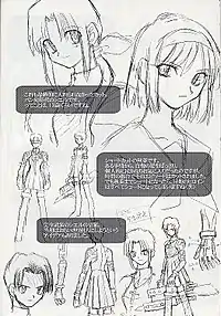 В начальный период разработки концепции предполагалось создать образ Арквейд как классического вампира с чертами характера стереотипной дворянки, который в дальнейшем был пересмотрен в пользу детского поведения и безгрешности и был подчёркнут выбором дизайна костюма белого цвета[30]. Образ Акихи должен был стать отражением понимания автором понятия «леди»[30]. По настоянию Такэути в число персонажей были добавлены близнецы-горничные[31]. Для персонажей не планировалось включение элементов моэ-фансервиса, поскольку Насу на тот момент не до конца понимал смысл этого понятия[28]. Среди школьного окружения главного героя было решено выделить друга-гомосексуала, схожего чертами характера с героем аниме «Евангелион» Нагисой Каору и становящегося серийным убийцей против своей воли. После окончания формирования концепции персонаж был преобразован в Юмидзуку Сацуки, а её образ приближен к поведению Акари Фудзисаки из манги Hikaru no Go, и было запланировано создание отдельной сюжетной арки, где бы она выступала как главная героиня[27]. Первая демоверсия игры была представлена на летнем Комикете 1999 года и распространялась бесплатно[32].