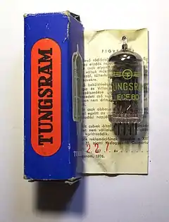 В 1921 году Tungsram учредила собственную научно-исследовательскую лабораторию (её возглавил Игнац Пфейфер, а в 1922 году начала массовый выпуск радиоламп — вначале с вольфрамовыми катодами, а с 1927 года — с оксидными катодами собственной разработки[47]. Поначалу новое направление было убыточным, продажи радиоламп шли плохо, и только к 1930 году перевалили за один миллион штук[48]. При этом себестоимость и надёжность ламп Tungsram были по-прежнему существенно хуже, чем у американских конкурентов, поэтому в 1933 году Tungsram была вынуждена приобрести лицензию на технологии у RCA[49]. Тем не менее, Tungsram ввязалась в борьбу с самым передовым европейским производителем, Philips: после того, как Philips открыл производство радиоламп в Будапеште, Tungsram основала собственное производство на родине конкурента, в Нидерландах[3]. Как следствие, Philips и Telefunken были вынуждены впустить Tungsram в складывавшийся, пока негласный, радиоламповый картель[3]. В этом картеле, формально учреждённом в 1936 году, Tungsram имел долю в 12 % против 88 % у консорциума Philips-Telefunken[3].