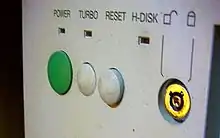 Турбо-кнопка, характерная для IBM/PC-совместимых компьютеров, позволяет переключать частоту процессора между нормальной и пониженной.