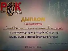 Диплом «За активную поддержку молодёжного творчества и значительный вклад в развитие белорусского рок-движения») - Тузін. Перазагрузка (Рок-коронация 2009, «Проект года»)[36]
