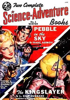 | 1 (зима 1950 года) | «Камешек в небе» (Pebble in the Sky) | Айзек Азимов | Нет | Роман был издан в том же году издательством Doubleday[12]. |