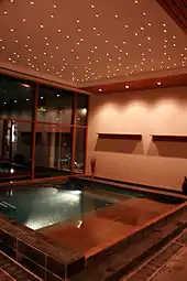 В отеле есть большой бассейн, две джакузи, финская и турецкая сауны, контрастный душ и контрастные ванны. Из оригинальных решений — бассейн под открытым небом с тёплой водой (находится на фасаде здания, выходящего на пляж), а также бассейн в котором имеется высокая скамья, на которую можно лечь и лежать в воде не боясь утонуть, при этом потолок выполнен в виде звёздного неба (на фото), а стены комнаты обладают шумоизоляцией.