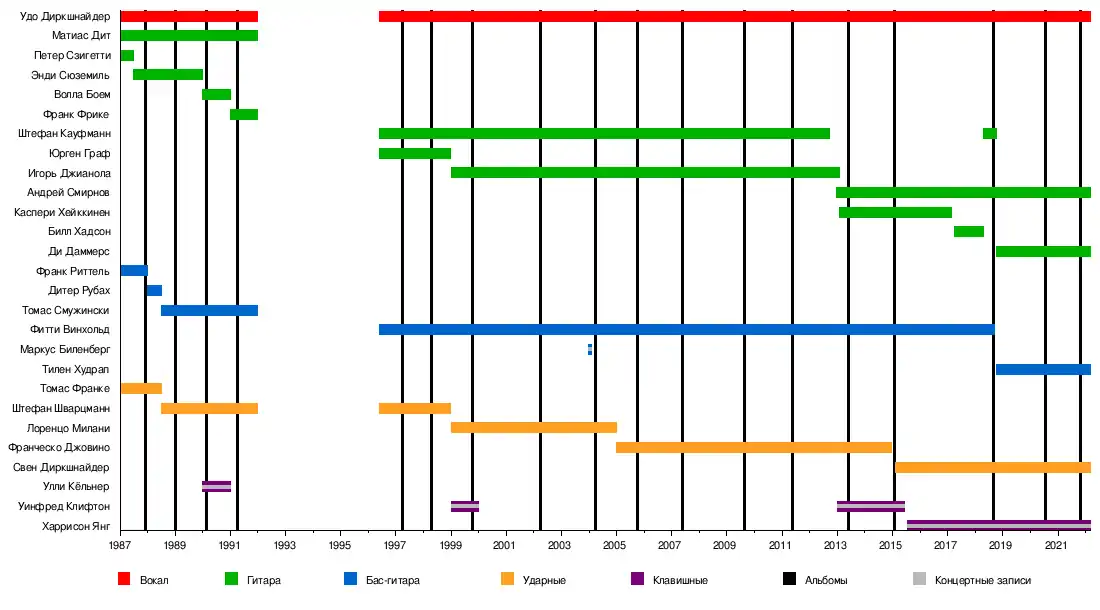- Удо Диркшнайдер — вокал (1987 — 1992, 1996 — настоящее время)