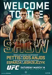 Это было третье по счёту (после UFC 103 и UFC 171) событие UFC, состоявшееся в Далласе. Его возглавил поединок поединок за титул чемпиона UFC в лёгком весе между действующим чемпионом Энтони Петтисом и главным претендентом Рафаэлом дуз Анжусом[2]. Вторым по значимости стал другой титульный бой между Карлой Эспарсой, у которой должна была пройти первая защита чемпионского титула в женском минимальном весе, и главной претенденткой Йоанной Енджейчик.