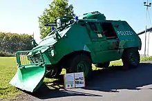 - полицейская бронемашина — могла быть оснащена дополнительным полицейским оборудованием (оснащенной стеклоблоками командирской наблюдательной башенкой, бульдозерным ножом для расчистки завалов и препятствий, поисковым фонарём-прожектором, прибором ночного видения, громкоговорителем, водомётом, проблесковым маячком и др.).