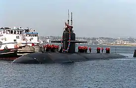 ![]() USS Chicago возвращается в базу после операции «Буря в пустыне» | |