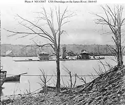 Вступив в строй в марте 1864 года, «Онондага» была немедленно назначена для действий в устье реки Джеймс-Ривер. Река эта, соединявшая Хэмптон-Роудс с Ричмондом, являлась ключевым пунктом для конфедератов; удерживая реку, их броненосцы обеспечивали защиту подступов к Ричмонду с юга, и одновременно, создавали постоянную угрозу для коммуникаций федеральной армии, проходивших через Хэмптон-Роудс.