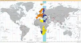 UTC+2 зимой в Северном полушарии / летом в Южном полушарии (декабрь) UTC+2 летом в Северном полушарии / зимой в Южном полушарии (июнь) UTC+2 в течение всего года UTC+2 в морских зонах Суша вне UTC+2 Морские зоны вне UTC+2 |