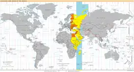 UTC+3 зимой в Северном полушарии / летом в Южном полушарии (декабрь) UTC+3 летом в Северном полушарии / зимой в Южном полушарии (июнь) UTC+3 в течение всего года UTC+3 в морских зонах Суша вне UTC+3 Морские зоны вне UTC+3 |