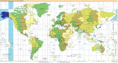 голубым — зона UTC−9 в океанах;