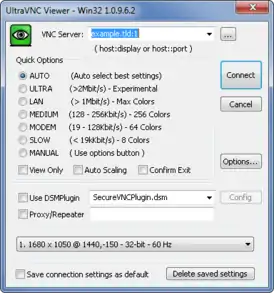 UltraVNC (иногда пишется как Ultr@VNC[3]) — это свободное программное обеспечение для операционной системы Microsoft Windows, использующее протокол VNC для управления удалёнными рабочими столами на других компьютерах. Он очень похож на RealVNC Free Edition, но здесь, помимо удалённого управления, поддерживаются дополнительные возможности, такие как модуль шифрования для безопасного клиент-серверного соединения. Содержит модуль Java Viewer, который позволяет получить доступ к компьютеру, используя простой веб-браузер, поддерживающий Java. Также возможна отправка файлов, чат и различные методы аутентификации. Программное обеспечение свободно и распространяется под GNU General Public License. UltraVNC написан на языках C, C++, и Java.