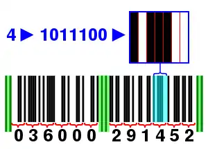 Каждая цифра левой или правой группы кодируется с помощью четырёх штрихов: двух светлых и двух тёмных. Каждый штрих может иметь относительную ширину в одну, две, три или четыре единицы. Общая ширина штрихов для одной цифры всегда составляет семь единиц. Битовая комбинация для каждой цифры разработана таким образом, чтобы цифры, насколько это возможно, отличались друг от друга. Максимальная длина тёмного или светлого участка не может превышать четырёх единиц. Общая ширина всего кода всегда равна 95 единицам. В любом коде 29 светлых и 30 тёмных штрихов. Все эти технические решения важны для надёжности и простоты сканирования этого кода.