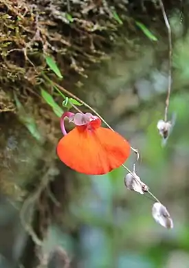Эпифит встречается на стволах и корнях деревьев, используя их как опору, на высотах от 1500 м, хотя описан случай растения, найденного на высоте 690 м. Период цветения — с августа по апрель.