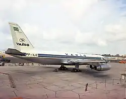 В 1949 году свой первый полёт совершил первый в мире серийный реактивный авиалайнер — de Havilland Comet 1, а в 1952 году он стал совершать уже регулярные рейсы. После этого в ряде стран также начались работы по проектированию реактивных пассажирских самолётов, а многие крупные авиакомпании разместили заказы на них, ведь теперь пассажиров можно было доставлять гораздо быстрее и порой даже дешевле, по сравнению с быстро устаревшими поршневыми винтовыми. VARIG и на этот раз решила не отставать, сделав выбор в пользу предприятия The Boeing Company, которому в сентябре 1957 года заказала два самолёта модели 707-400 для эксплуатации на маршруте Рио-де-Жанейро—Нью-Йорк; данная модель была идентична 707-300 (удлинённая версия оригинальной 707-100), но вместо американских двигателей Pratt & Whitney JT4A на ней были применены более экономичные британские Rolls-Royce Conway 508[35]. Однако так как The Boeing Company имела уже большой пакет заказов и от других операторов, бразильская компания в октябре того же года заказала также и французский региональный Sud Aviation SE-210 Caravelle, став его третьим заказчиком после Air France и Scandinavian Airlines System[36]. VARIG стала первой авиакомпанией Бразилии, которая заказала себе реактивные авиалайнеры[3].