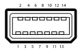 Описывается расположение и назначение 15-штыревого (пинового) разъёма/гнезда VESA DDC2/E-DDC; нумерация в списке соответствует цифрам на иллюстрации справа разъёма-«мамы» справа налево, сверху вниз[1]: