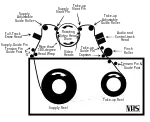 В отличие от формата «Бетамакс», в котором был использован механизм заправки магнитной ленты с поворотной платформой, характерный для всех предыдущих кассетных систем, формат VHS основан на новом принципе так называемой М-заправки[5]. Такой механизм извлекает и заправляет магнитную ленту при помощи двух направляющих вилок, каждая из которых состоит из вертикального ролика и наклонной цилиндрической стойки. Стойки создают точный угол захода ленты на барабан вращающихся головок, обеспечивающий наклон дорожки видеозаписи к базовому краю. Углы захода и схода ленты с барабана равны углу наклона плоскости вращения барабана к основанию механизма, благодаря чему оба рулона кассеты находятся в одной плоскости.