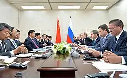 Китайская и российская делегации за столом переговоров, 8 июля 2015 года