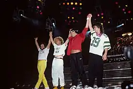 ![]() Группа Van Halen во время выступления в 2015 году. Слева направо:Вольфганг Ван Хален, Алекс Ван Хален, Дэвид Ли Рот и Эдди Ван Хален. | |