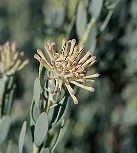 V. alpina — прямостоящий кустарник высотой до 1,5 м с группами от двух до шести цветочных головок на кончиках ветвей, каждая из которых состоит из одного ряда околоцветников, образующих незаметную инволюцию, и длинные обратные овальные до эллиптических листьев 30—45 мм и шириной 5—13 мм, эндемик Камисберга. В отличие от него, у V. amoena — отдельные цветочные головки, каждая из которых представлена 3—4 завитками околоцветников, которые образуют заметную обвертку соцветия. У V. amoena — более короткие листья от овальной до эллиптических формы длиной 15—30 мм, растёт ма юге гор Куэбоккевельд и прилегающего хребта Свартругген. V. latebrosa имеет одиночные цветочные головки, каждая из которых содержит до 40—50 цветков, листья — от линейной до ложкообразной формы, и является эндемиком Лангеберга близ Робертсона. V. obtusata имеет линейные или несколько ложкообразные листья длиной 9—45 мм. V. obtusata подвид obtusata — это кустарник, который растёт только в районах Монтегю и Вустер, а подвид albomontana — это прямостоящий куст с перевала Пердеклооф. У Leucospermum secundifolium также есть брактеолы, которые становятся деревянистыми, но его листья — прямые, а цветочные головки — не на кончиках ветвей, растёт на южных склонах гор Кляйн-Свартберг[2][3].