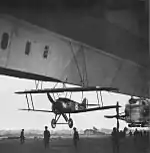 | HMA No. 1 перед испытательным полетом, 24 сентября 1911 года | Дирижабль SS class и минный заградитель | Дирижабль типа 23 с подвешенным к нему самолётом Sopwith Camel | Дирижабль типа SSZ на борту авианосца HMS Furious, 1918 год |
