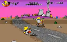 - Post-Apocalypse (рус. «Постапокалипсис»). После аварии на АЭС, герой отправляется в путешествие до постапокалиптического Спрингфилда на мотоцикле. Путь сам лежит через череду преград, длинной в 10 миль, по пути ему препятствуют повзрослевшие хулиганы Джимбо Джонс и Керни. Барт может их или отталкивать в сторону, или же швырять в них шары с водой, однако, с новой милей они снова наступают. Также препятствуют школьный автобус, который объехать игроку оказывается не так уж и просто, а также белки и кости зверей.