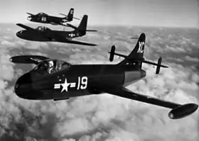 ![]() F6U-1 Pirate из состава исследовательской эскадрильи, размещенной на базе Патаксент Ривер, 1949 год. | |
