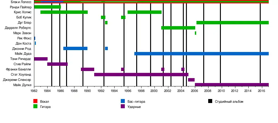 После увольнения Коста в группу был приглашён гитарист Крис Холмс (англ. Chris Holmes), Блэки Лолесс по этой причине сменил гитару на бас-гитару.