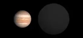 ![]() Сравнение размеров WASP-12b с Юпитером. | |
